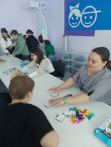 В мастерской «Дошкольное воспитание» профориентационные встречи проходят уже не в первый раз. Во время экскурсии студентки познакомили ребят с оборудованием мастерской, провели развивающие игры «Цветовой код», «Квадриллион», игры с использованием шкафа «7знаний». Продемонстрировали школьникам в мобильном куполе фильм о динозаврах и показали, как можно процесс обучения сделать интересным и захватывающим при помощи интерактивной песочницы.