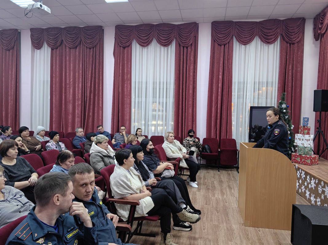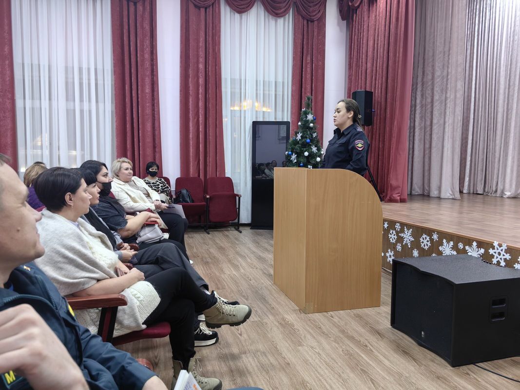 - сотрудники МЧС (дознаватель Отдела надзорной деятельности и профилактической работы по г. Белоярский и району Сергей Дмитриевич Юдин и заместитель начальника 9 ПСЧ 4 ПСО ФПС ГПС Главного управления МЧС России по ХМАО-Югре, Семёнов Александр Николаевич) выступили перед собравшимися по вопросам пожарной безопасности в зимний период, остановившись подробно на основных причинах возгораний, мерах профилактики и основных действиях, которые необходимо знать и выполнять родителям и несовершеннолетним детям
