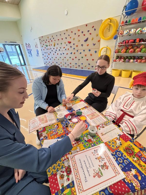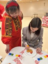 Участники творческих мастерских расписывали тульские пряники, готовили хантыйский оберег, создавали из песка и красок чувашскую мандалу, украшали татарский сапожок узорами, раскрашивали глиняную игрушку.